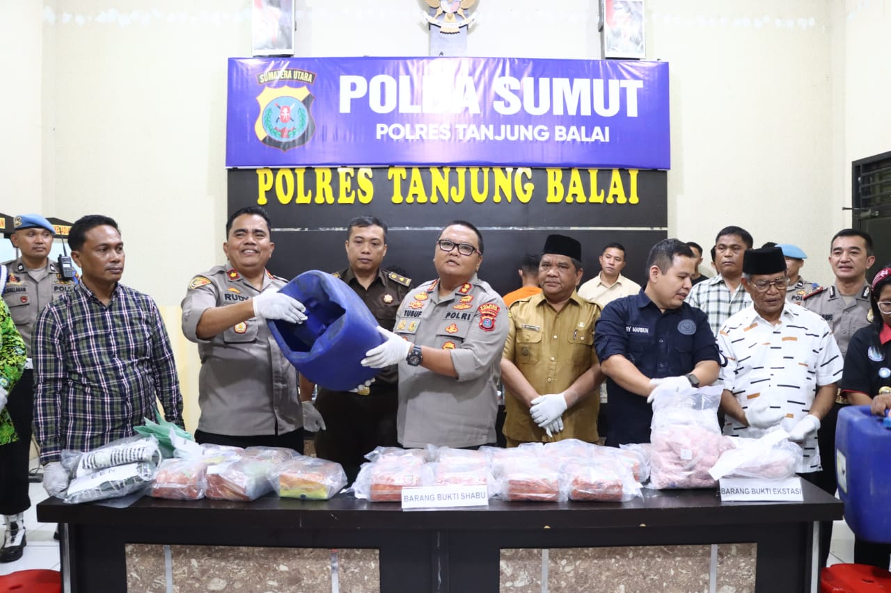 Polisi menyita sejumlah barang bukti antara lain 7 bungkus sabu seberat 133,96 gram, 1 plastik hitam, 1 plastik kuning, dan 1 plastik merah merk Tawon, 1 unit handphone merek Vivo warna hitam-hijau, 1 gunting, 1 sendok sabu dari sedotan hitam, 1 penjepit besi, 1 timbangan digital. Buang Narkoba.